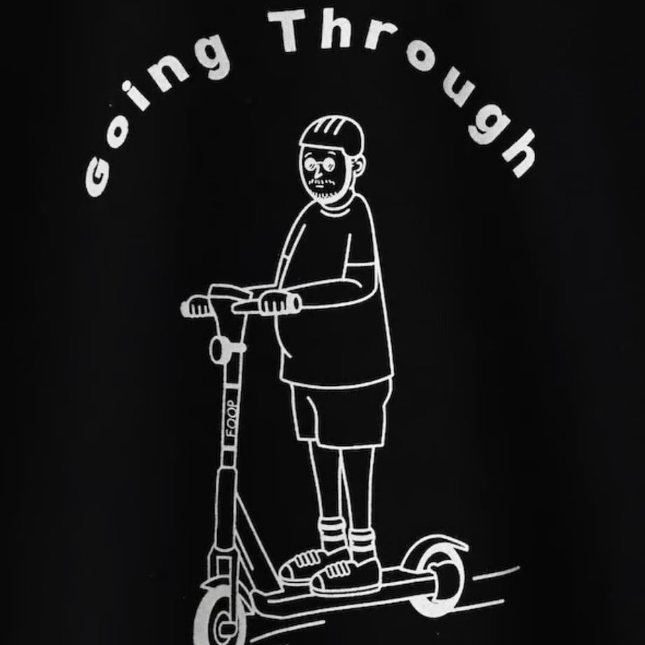 今回はキックスケーターに乗って登場です!