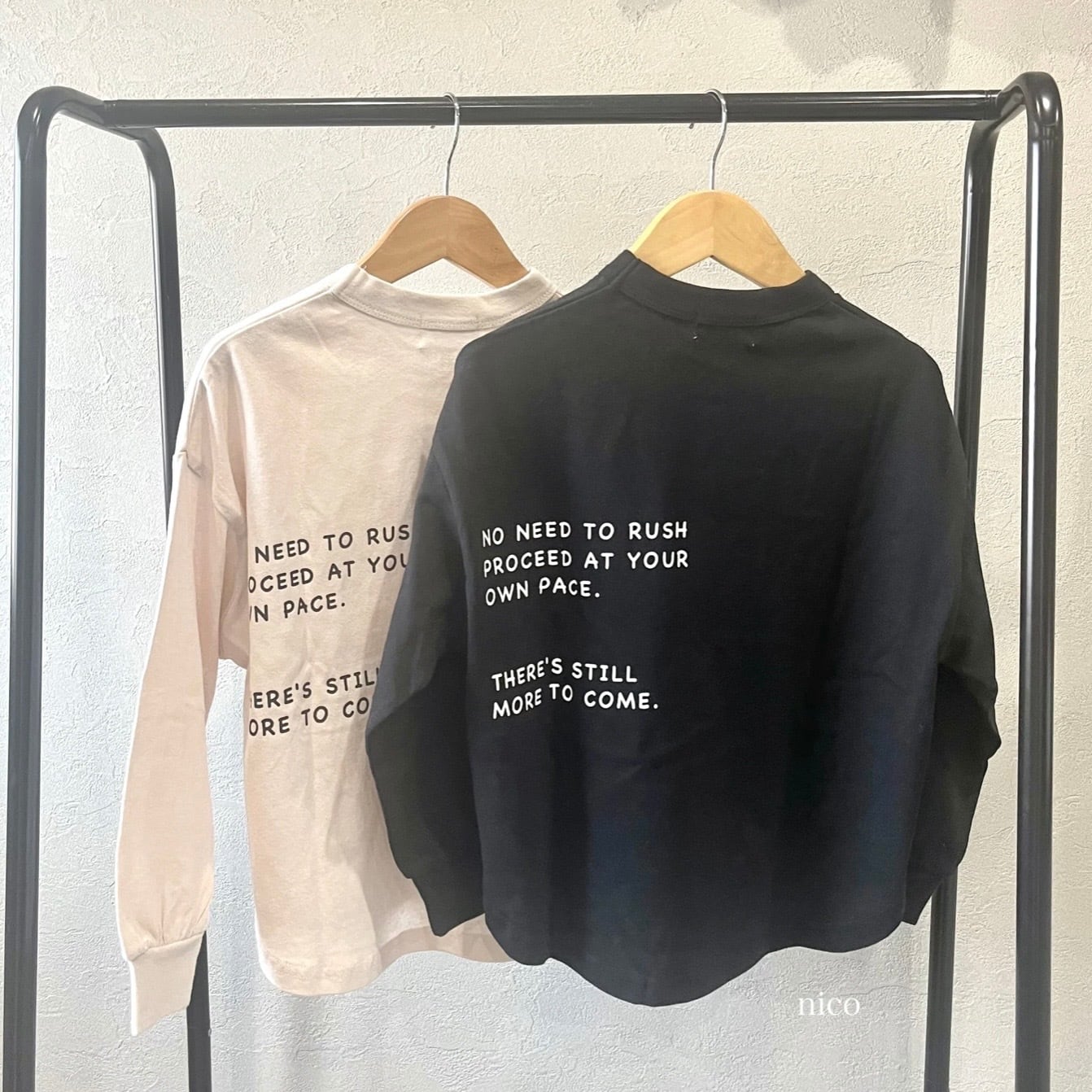 前後異なるロゴデザインのカジュアル長袖Tシャツ